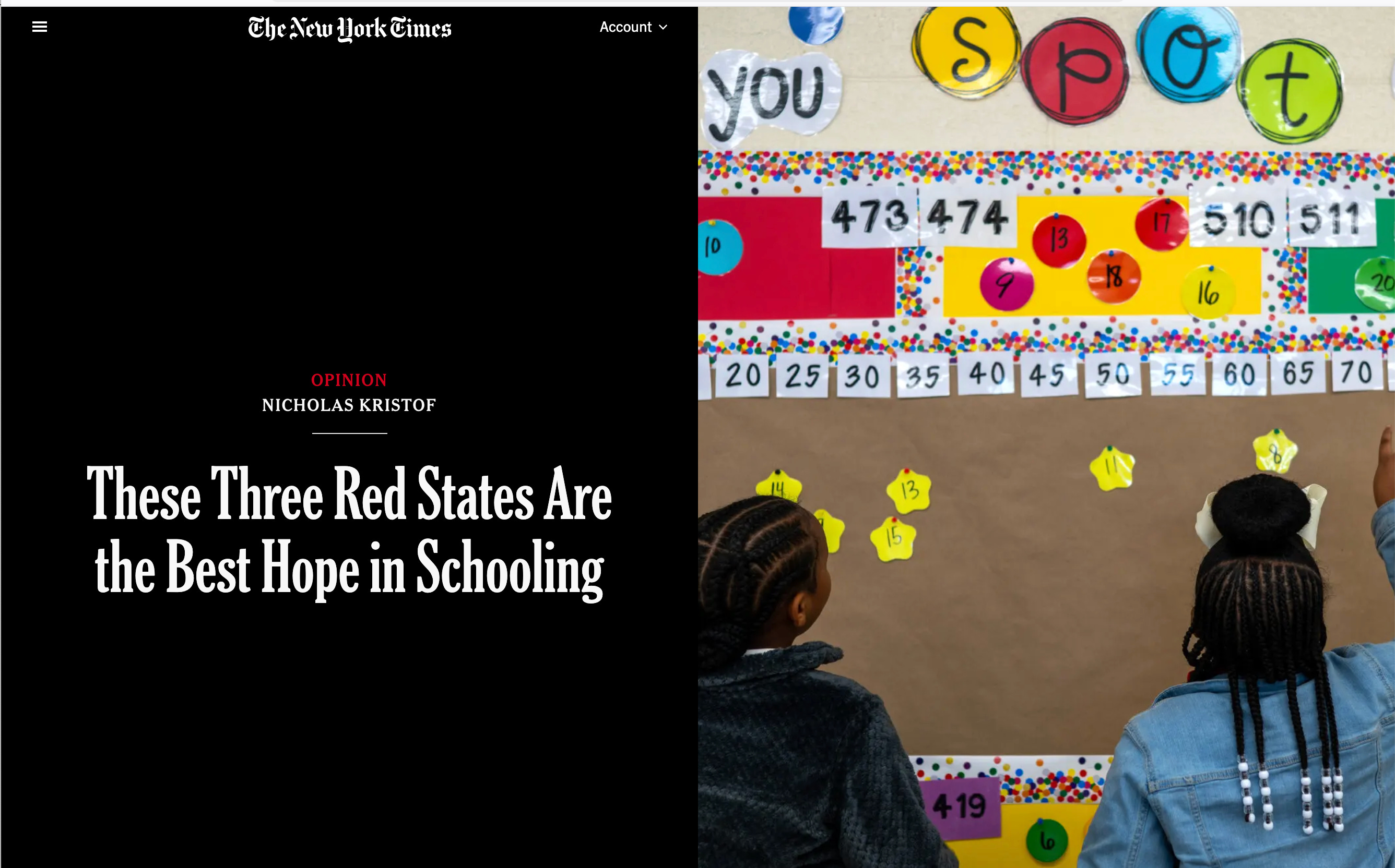 Nicholas Kristof has jumped on the bandwagon, first spreading the false claim that 2/3 of students in the US are not proficient in reading, and now this: