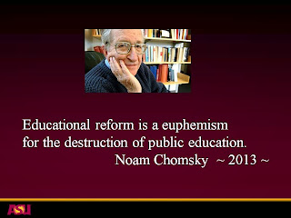 And – this narrative goes on – what public education needs is total reform: higher standards, more tests, brighter teachers uncorrupted by the wishy washy “education school” ideologies, and above all, choice and competition. This narrative serves a set of private interests that want to reform our schools.