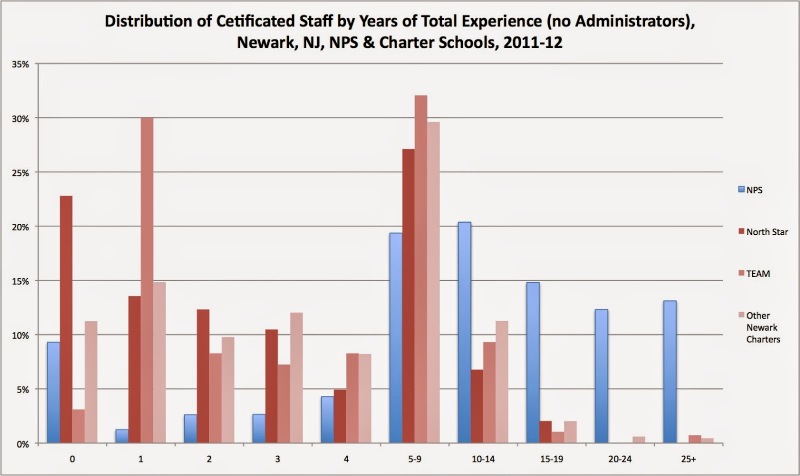 Notice the high number of teachers with only one year of experience at TEAM? Notice how they barely have any teachers with more than 15 years of experience? That’s when the NPS salary guide gives veteran teachers a big boost.