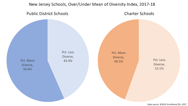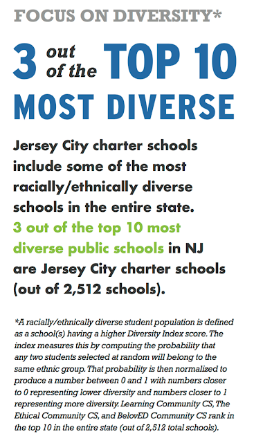 I'll go through all the data below.., but even if I didn't, it should be obvious that this is an absurdly narrow way to judge the entire New Jersey charter sector. Yes, three charter schools in Jersey City are diverse by this measure -- but what about the others? How can we assess the entire sector based on three schools from one city?