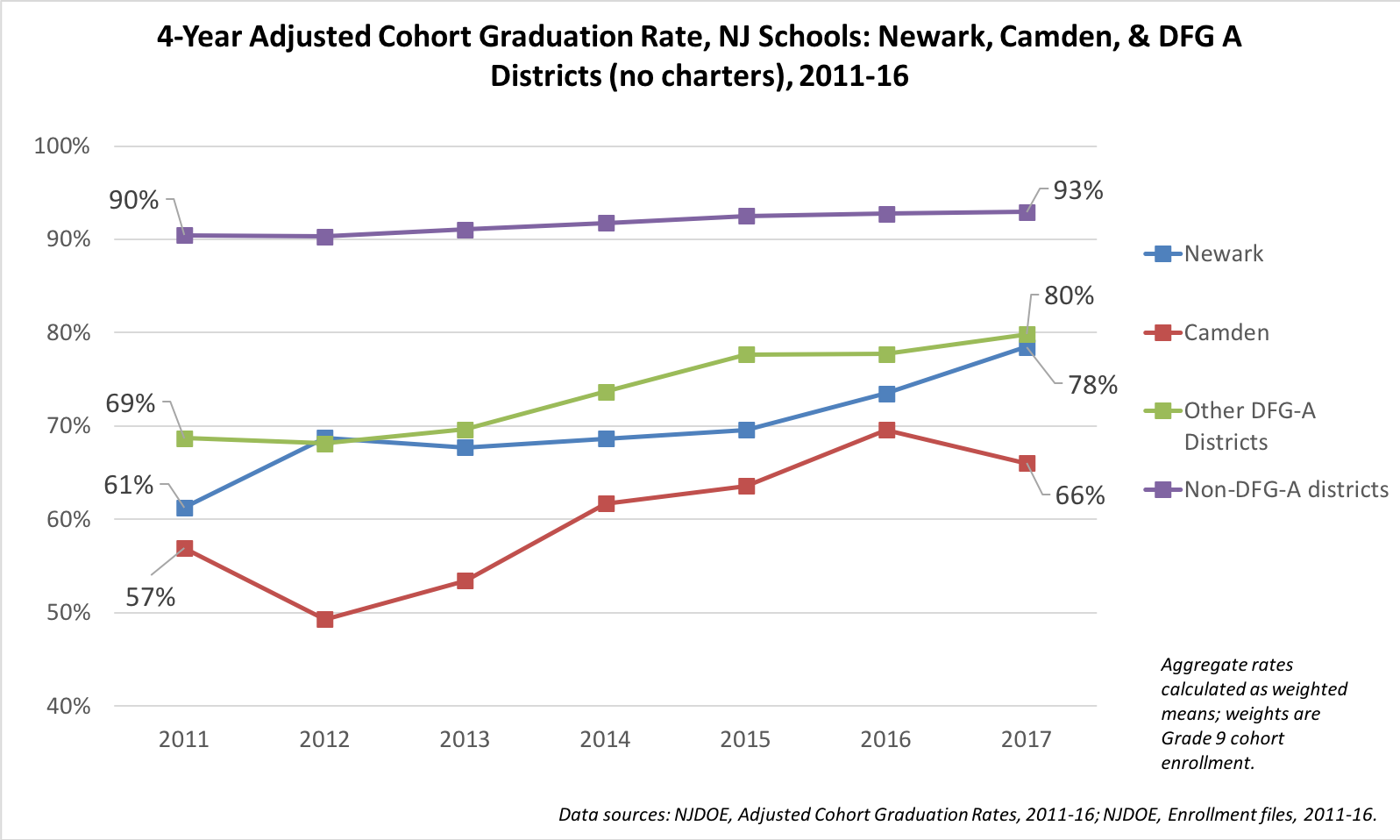 The rise in graduation rates for Newark and Camden simply mirror a trend for all similar districts in New Jersey.