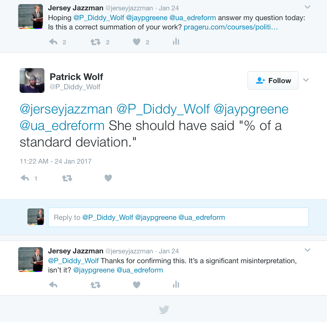And she's engaging in statistical malpractice of the worst order to sell school voucher schemes.