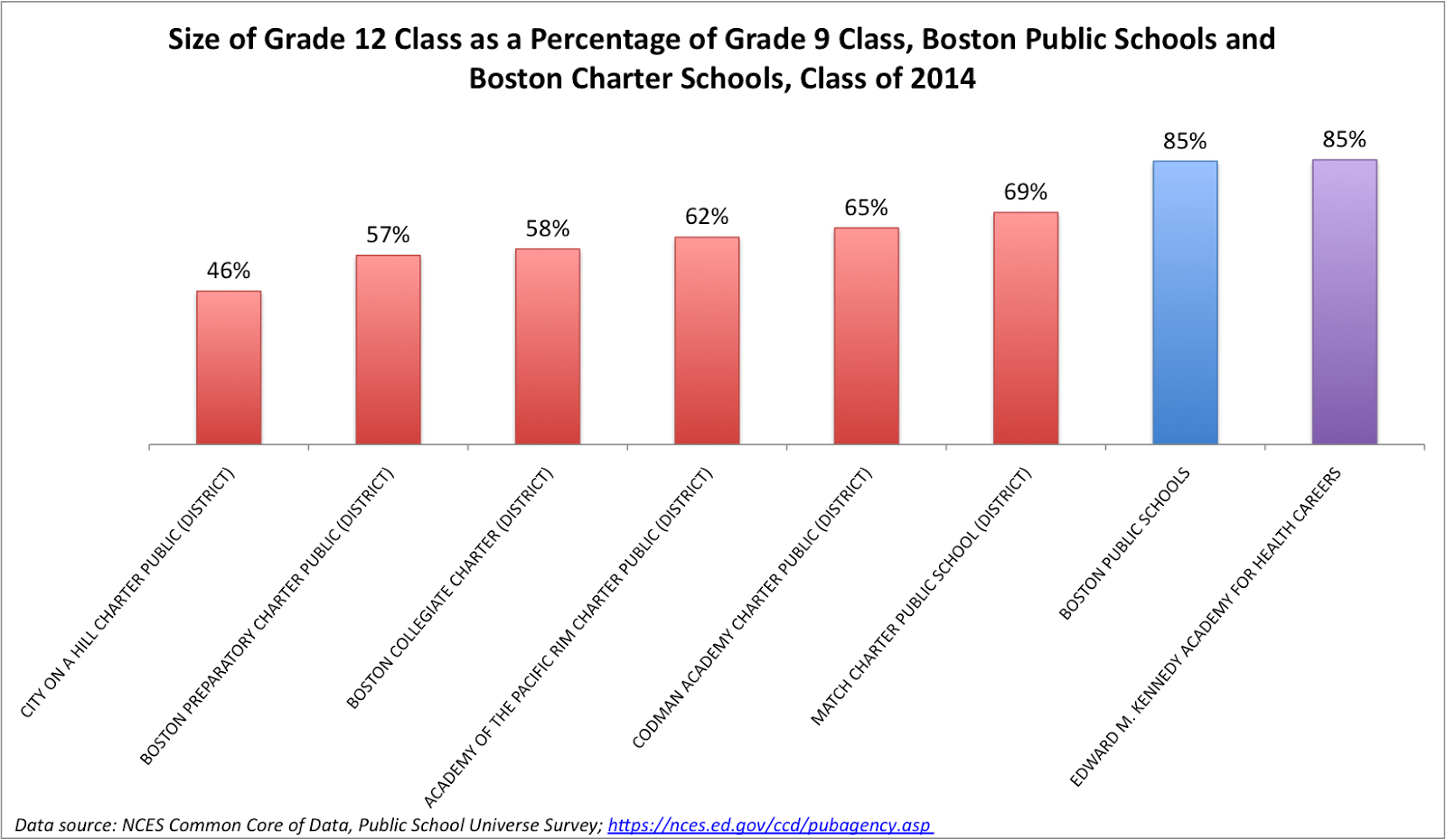 In addition: as I pointed out before, there are patterns of significant cohort attrition within Boston's charter high schools: