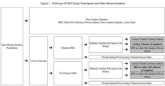 If the target population is all Boston students, we have to acknowledge the samples from the lottery studies are missing many of them. And it's not just students who don't enter the lottery; what about students who enter, don't earn a seat, and subsequently move to, say, a private school?*