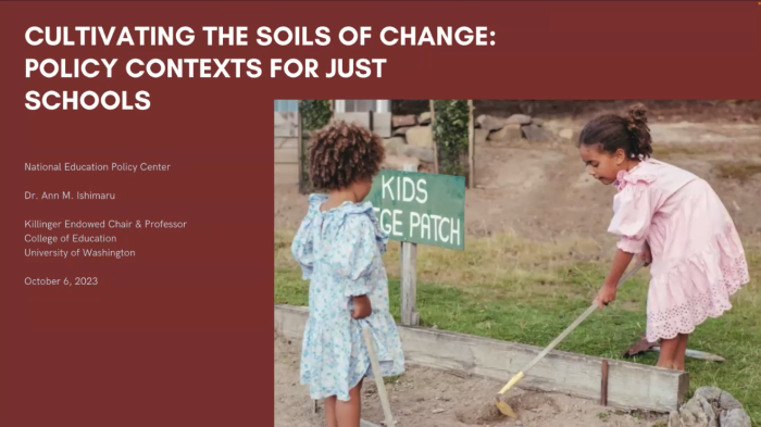 Professor Ishimaru discusses education policy as a lever of change in a presentation at the 2023 NEPC Fellows meeting.